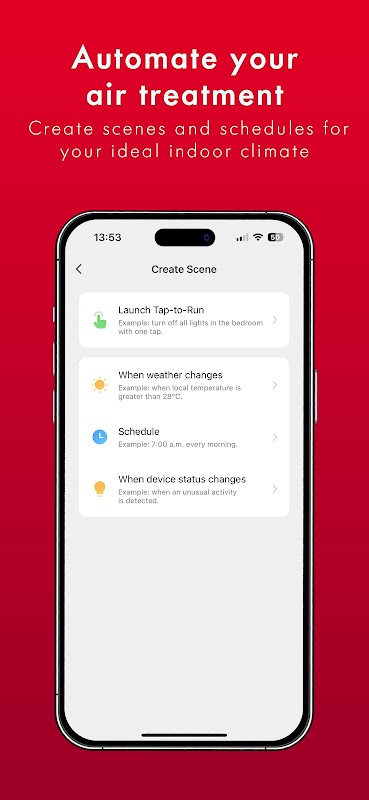 •Crea "Escenas" personalizadas para automatizar acciones según la hora, la temperatura o las condiciones del aire