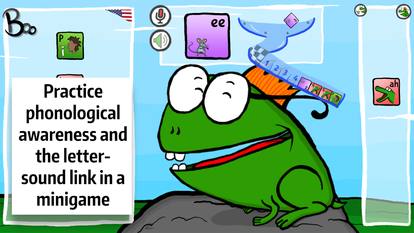 Boo ayuda a los niños a practicar los sonidos del habla que necesitan mejorar. Está diseñado para atraer la repetición espontánea de sonidos del habla individuales y sílabas simples. Al mismo tiempo, impone una conciencia fonológica útil, al mostrar qué acciones suceden en la boca durante la articulación.