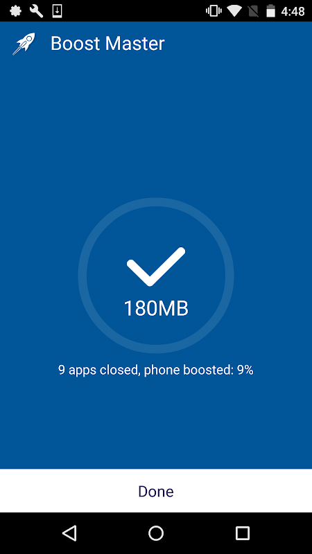 Boost Master es el más pequeño y más fácil de refuerzo dispositivo Android. Con la función de refuerzo con un solo toque se puede mejorar la memoria (RAM), la velocidad de tu dispositivo, enfriar su teléfono y extender el tiempo de espera.