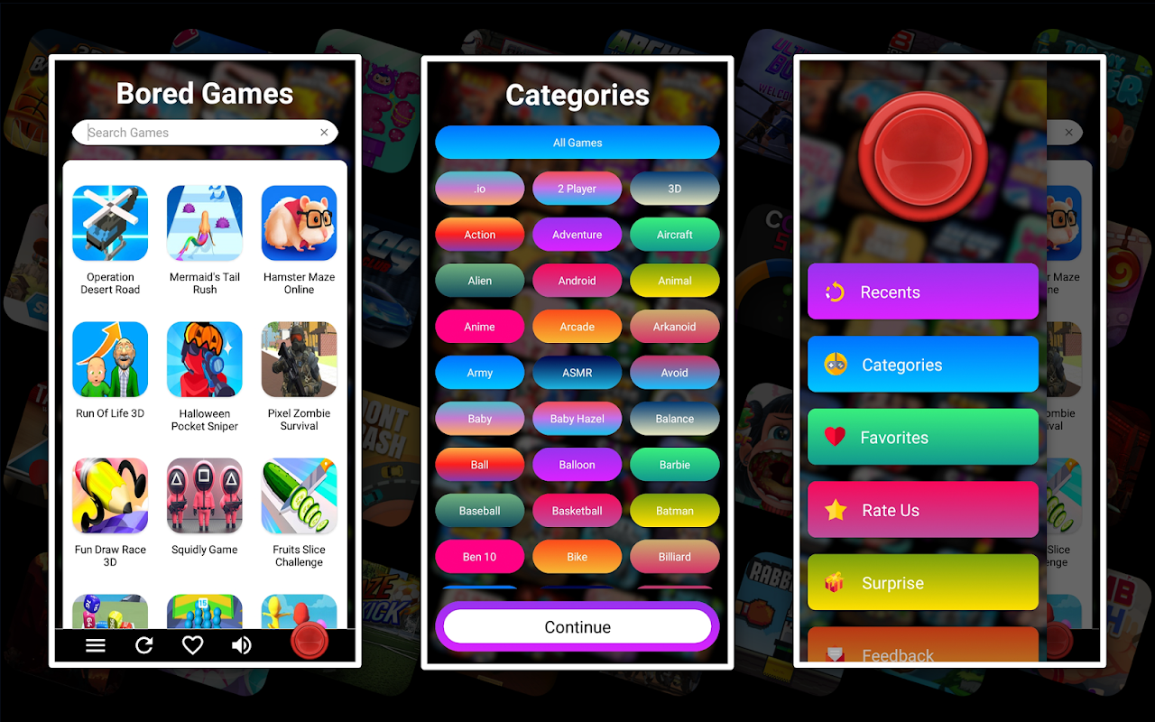 Bored Button Games es un juego mixto de más de 50 categorías. Esta es una colección de mini aplicaciones de todos los juegos, incluidos los juegos más populares. Todos los juegos gratuitos dentro de esta aplicación son muy interesantes y se agregan casi 100 juegos cada mes. Ofrecemos todos los juegos gratis para matar tu aburrimiento.