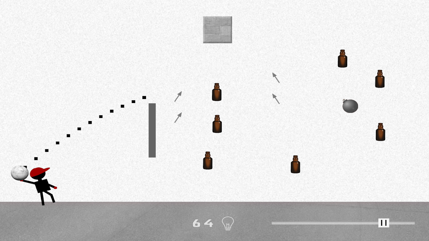 Lanza la piedra de forma que todas las botellas sean alcanzadas a la vez. Con más de 150 niveles únicos y 3 mundos, este juego de botellas te enganchará.