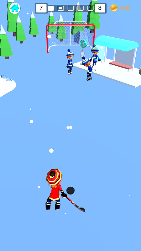Shoot the puck with your stick, dodge obstacles, and score in the net