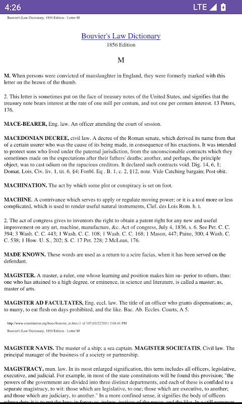 El diccionario de derecho Bouviers es una aplicación gratuita sin conexión enriquecida con terminología jurídica