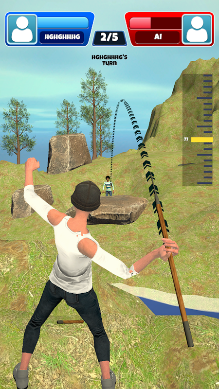 Elige tu arma favorita (arco, lanza, hacha o cuchillo) y lucha en duelos por turnos. ¡Cada arma es diferente, y cada turno importa! Usa movimientos inteligentes y buena puntería para ganar. Ideal para fanáticos de los juegos PvP y tiradores de tiro con arco.
