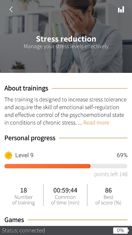 La aplicación le permite realizar entrenamientos de Neurofeedback usando el dispositivo BrainBit.