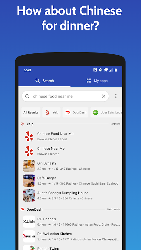 * One search to get all the relevant results from your apps (try searching for “Pizza”)