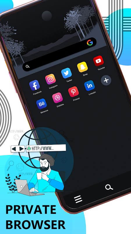 Enjoy unlimited search websites, download photos, funny videos and many more things on this web browser app.