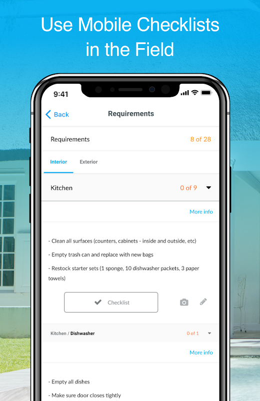 - Cree listas de verificación personalizadas para cada estancia y tipo de tarea para garantizar la calidad