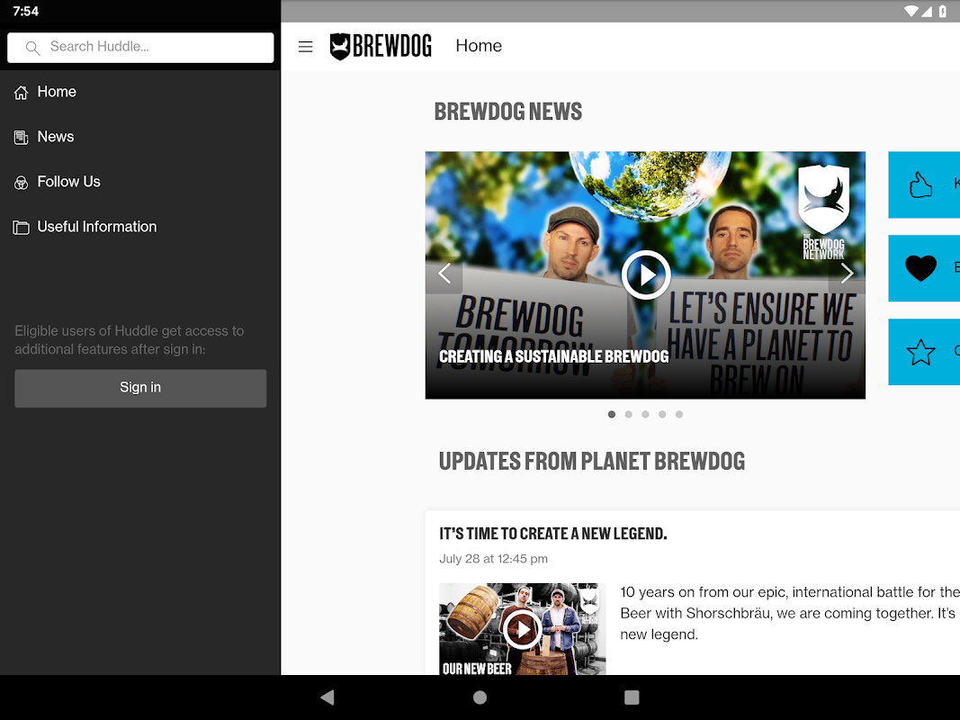 La aplicación Huddle es un lugar único para obtener información sobre la compañía BrewDog