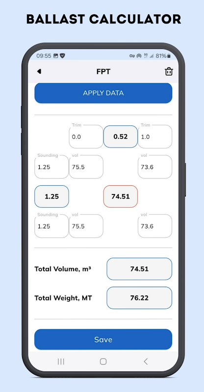 Proporciona calculadoras marinas esenciales para oficiales de cubierta, primeros oficiales y capitanes de barco, que permiten gestionar el estudio de calado, la gestión del lastre, la estiba de la carga, la estabilidad del buque y los cálculos a bordo, todo en una sola aplicación.
