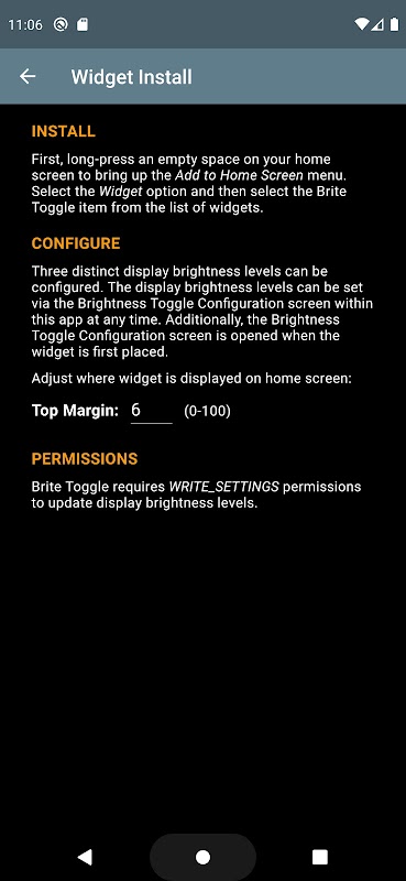 Brite Toggle Widget permite cambiar fácilmente entre tres niveles de brillo de pantalla predeterminados.