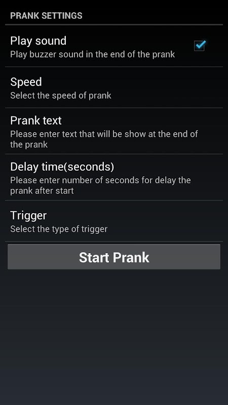 - Nueva funcionalidad! - Prank ahora se puede iniciar mediante agitación con el teléfono