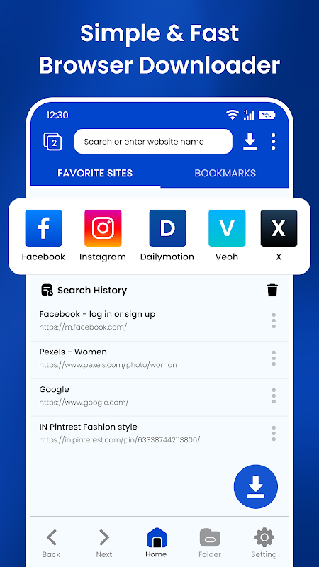 X Browser mini es 2 veces más rápido que otros navegadores. La descarga del navegador x reduce los tiempos de carga de la página y mejora el rendimiento del navegador web. La descarga del navegador X acaba de encontrar la forma más rápida de guardar sus videos favoritos en su carpeta Descargados