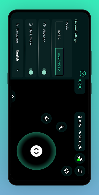 2️⃣ Seleccione el modo de control: use los botones en pantalla y el joystick para enviar comandos.