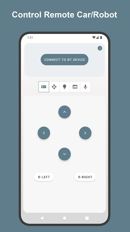 BT Remote Pro app joystick page is used to control a remote car or robot via Bluetooth. The joystick page is designed to handle Bluetooth-based custom remote car or robot electronics projects. As the buttons are placed on the joystick page, The remote car or robot action can be controlled forward, left, right, reverse, reverse-left and reverse-right.