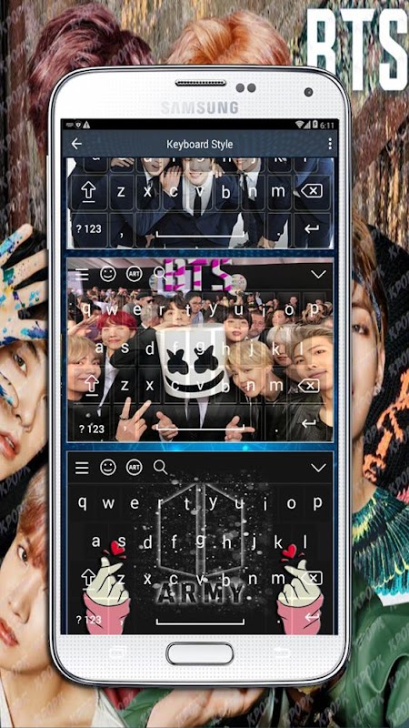 BTS’ is a popular keyboard theme with BTS’ Army fans background. BTS’ is designed for people who like colorful. This lovely keyboard will make your Android phone unique and cool.