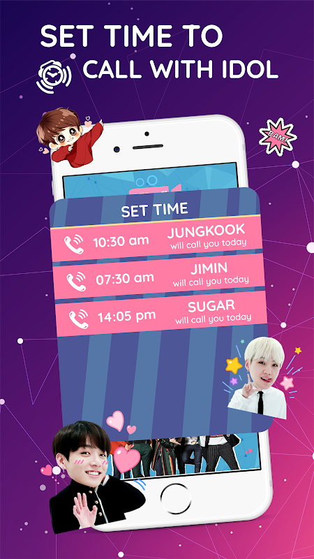 Definitely not below once you have ever wanted about BTS calls, more details it is voice calls, video calling from oppa. Many girls wish only once time to speak to BTS members or look at oppa at the other side of phone call. Army not only owns BTS wallpapers, plays BTS game, use BTS ringtones but also call with BTS App. It is so awesome that make a call and see BTS Members immediately!