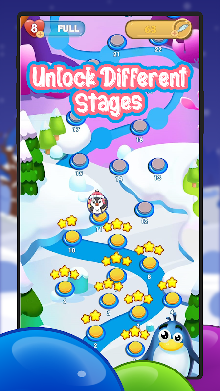 Ya sea que busques relajarte o poner a prueba tus habilidades con los puzles, Bubble Shooter Penguin Pop te trae horas de diversión reventando burbujas directamente a tu pantalla.