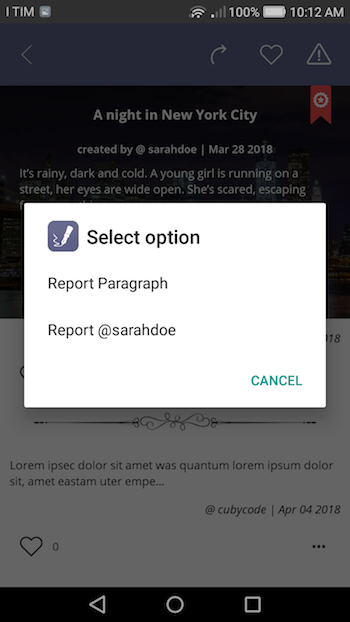 Users can like your Bubbles Stories and Paragraphs, as well as report content and users to the Admin.