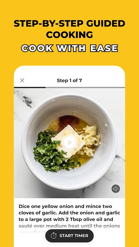 Nuestras recetas paso a paso incluyen una imagen o un video para que sepa exactamente qué hacer y no se preocupe por volver a cocinar demasiado con los temporizadores incorporados.
