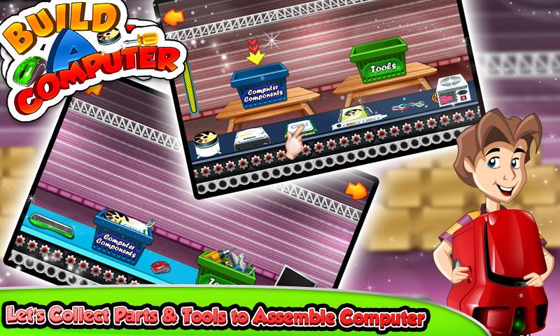 En primer paso que tiene que jugar un mini juego en el que su necesidad de separar las herramientas y piezas de computadoras. Ponerlos en diferentes cubos y llevarlos a su taller. Utilizar todas las herramientas modernas y equipos para unirse a los chips de ordenador y micro cuerpo. Trabajar como un maestro electricista y conectar todas las partes de computadoras en el lugar correcto. Dar ordenador para los clientes cuando está listo! Vender diversos monitores y mouse para los clientes. Esta personalizar fabricante de computadoras y diseñador de juegos es divertido impresionante. También se puede decorar las computadoras con diferentes colores de pintura.