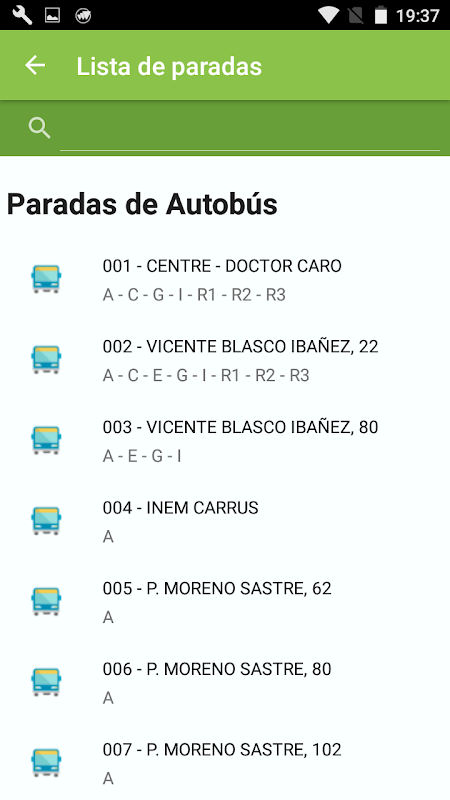 - Permite obtener la posición de las paradas más cercanas vía GPS y seleccionarlas como parada origen y destino en el cálculo de itinerarios.