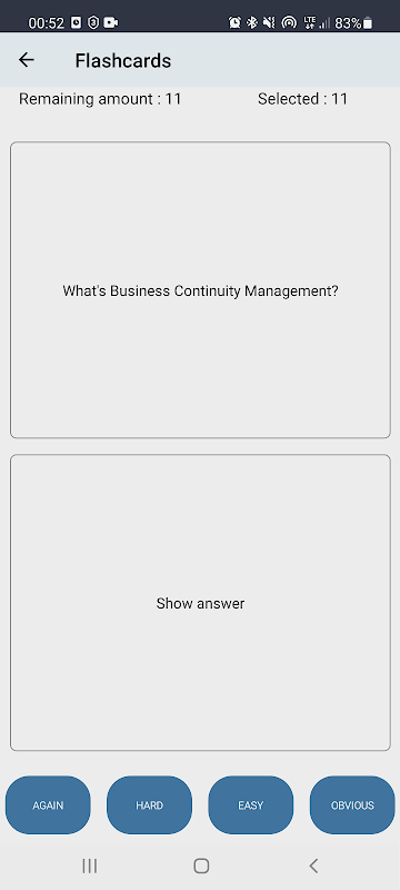 La aplicación contiene muchas preguntas y respuestas de entrevistas para Continuidad del negocio. También podemos agregar sus preguntas. La próxima versión podrá responder la pregunta del usuario (usted)