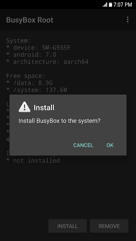 Para instalar BusyBox se requieren privilegios de superusuario (root), pero también puede utilizar las herramientas de busybox sin permisos de root.