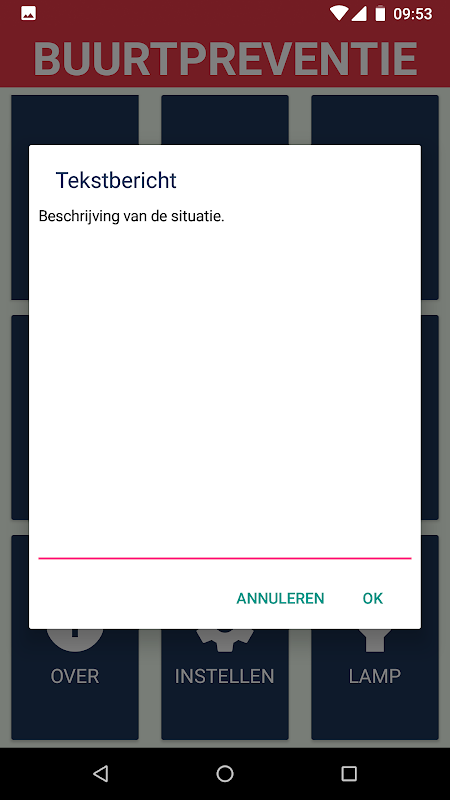 Esta aplicación es una herramienta que puede usar si es miembro de Buurtpreventie. Puede contactar rápidamente a la policía de varias maneras. Además, puede compartir mensajes desde esta aplicación a través de, por ejemplo, Whatsapp o Facebook. Puede ingresar el número del comandante operativo.