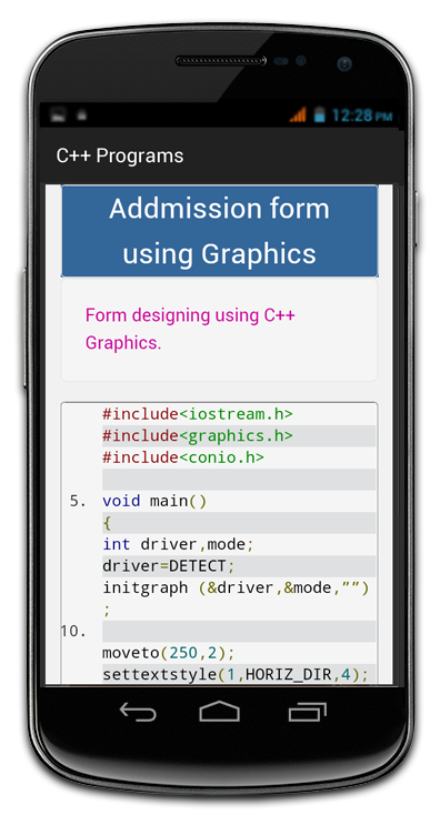 La aplicación del programa C ++ es una muy buena colección de programas cpp. Incluye programación de gráficos también.