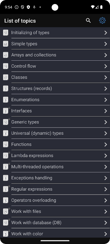 • Búsqueda rápida del ejemplo correcto por código o por nombre de tema.