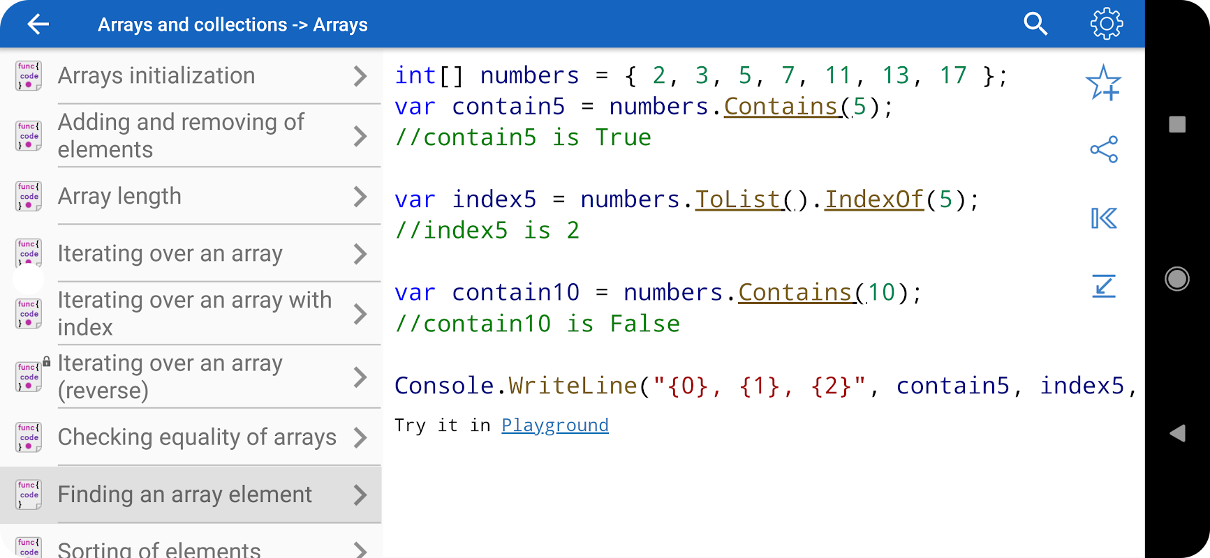 • Todos los ejemplos de la aplicación están disponibles sin conexión.