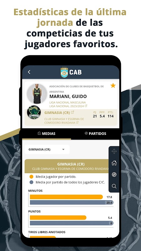 Aplicación para los aficionados de la y la Confederación Argentina de Básquetbol, con la que podrán consultar todo tipo de información de sus equipos y jugadores favoritos.