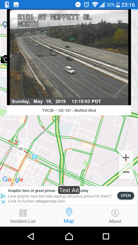 - La vista del mapa también puede mostrar imágenes de cámaras de tráfico de California en vivo.