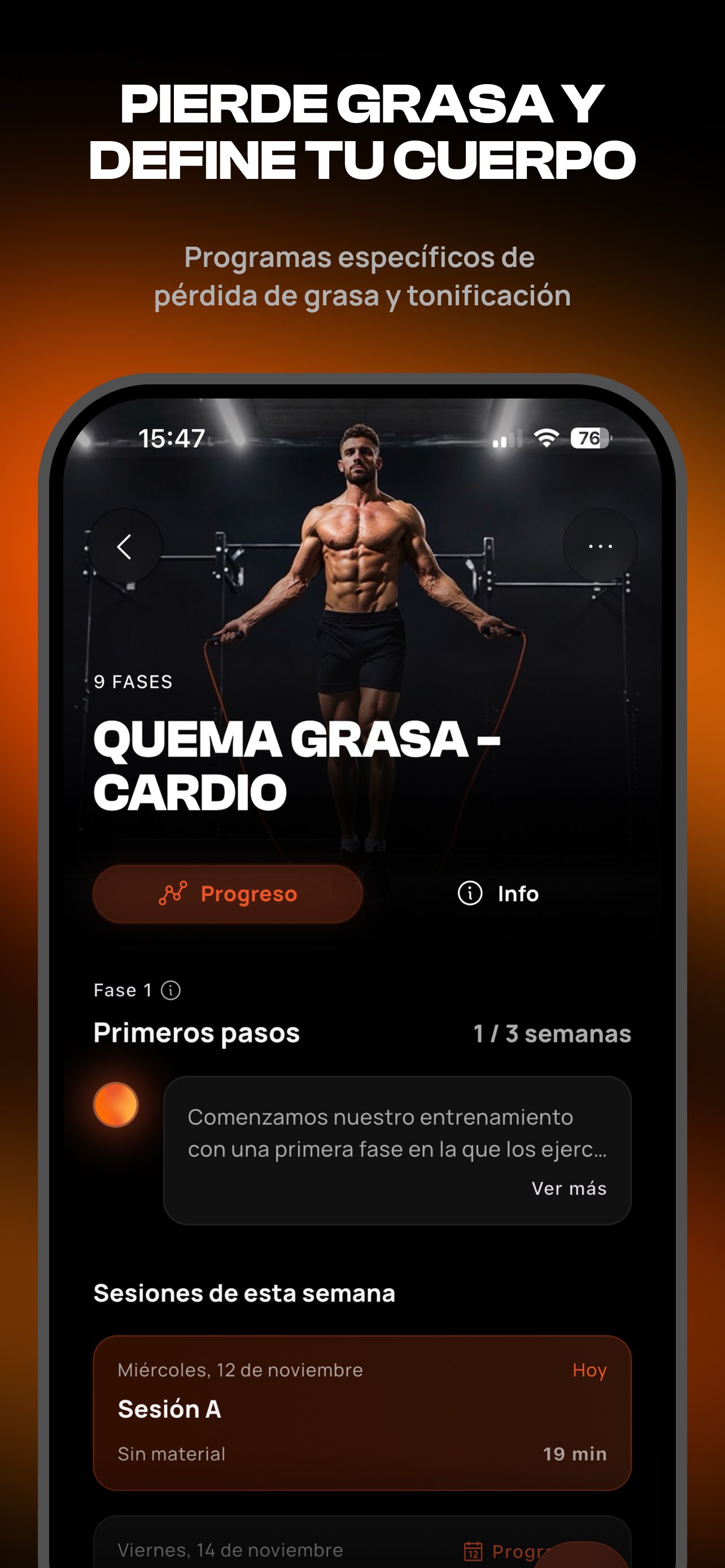 • Resultados medibles: registra sesiones y optimiza tu progreso.