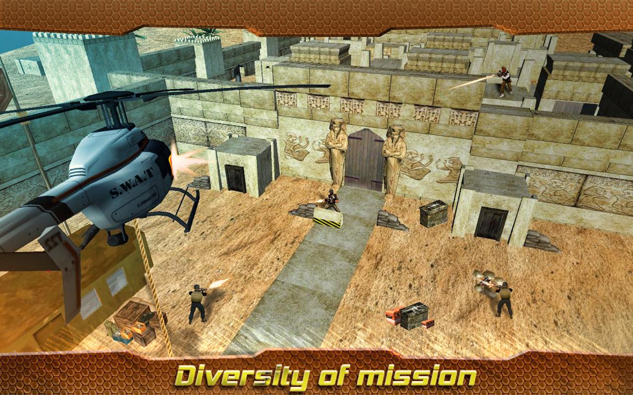 Misión: Llamada de SWAT ofrece la oportunidad de salvar a pueblos inocentes de la ciudad de crímenes de gángster con la ciudad de francotirador de asalto misiones de combate rehenes por grupo terrorista en la ciudad de guerra moderna. Utilice el ejército, el IGI y las habilidades del comando del GOLPE para matar a enemigos por el contraataque con la simulación del francotirador y para convertirse en el mejor asesino del tiro en la cabeza. Realiza una huelga de francotirador contra los terroristas como un especialista en francotiradores de la zona de guerra moderna con un ataque con cañones y demuestra que eres el primer comando. Tu misión es disparar a organizaciones terroristas, ya que eres la última esperanza para salvar la ciudad del estrago. Habilidades de comando marino a la lucha antiterrorista mortal contra los terroristas y derribar a todos. Eliminar el terrorista muerto por francotirador huelga con juego de francotirador de acción extremadamente emocionante. Y luchar duro como un soldado de ejército fuerzas de comando militar luchando con terroristas. Tienes una tarea especial para hacer contra ataque terrorista, mientras que el terrorista sangriento con las armas modernas del ejército mortal, probar su objetivo, tiro habilidades de inteligencia abd con el juego en línea de combate solo con de rifles de asalto, ak47, rifles de francotirador, escopetas, granadas, lanzacohetes, med Kits, paquetes de la salud, armadura para probar que usted es shooterand del comando del ejército más. Usted está asignado a capturar al terrorista, ya sea vivo o muerto, ser un valiente soldado, luchar por su país disparar a los mortales.