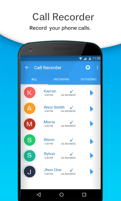 Call Recorder es una aplicación gratuita grabador de llamadas. Este grabador de llamada automática es una gran aplicación de grabación del teléfono para android, Grabar cualquier llamada telefónica que desea, elegir qué usuarios o llamadas telefónicas entrantes salientes \ grabar y elegir las llamadas que desea guardar o compartir.