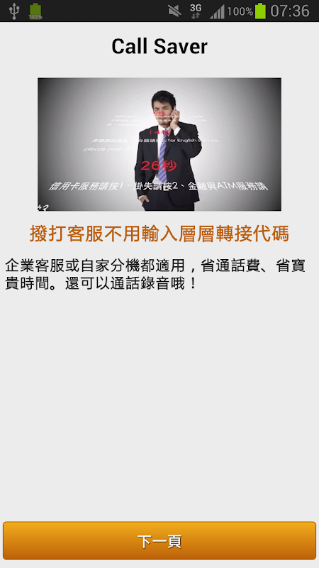 Call Saver APP Servicio al cliente Ahorre dinero Pase / Pase rápido para clientes, resuelva sus problemas! Le permite presionar un botón de marcación para ir directamente al especialista de servicio al cliente. Después de ser marcado por la aplicación móvil, enviará automáticamente códigos de transferencia de capa a capa para ayudarlo a ahorrar tiempo de llamada y ahorrar costos de llamada. Menos tiempo de llamada y su teléfono puede ahorrar más energía.