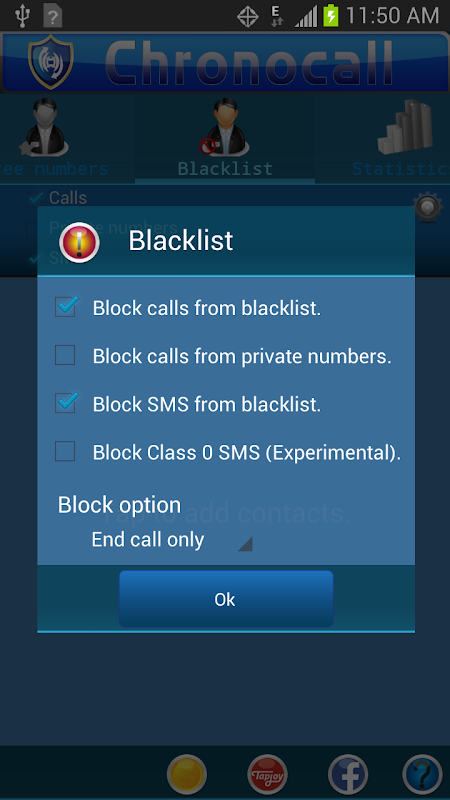 Con Chronocall es fácil llevar el control, puede colgar automáticamente al alcanzar un tiempo predeterminado, bloquea SMS y llamadas entrantes (Blacklist).