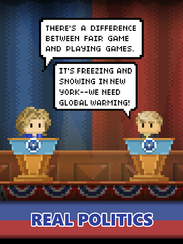 ¡Nunca antes una aplicación había borrado las líneas entre el debate político real y la genialidad de un videojuego! ¡Sube de nivel tu perfil de campaña, descubre personajes secretos y no dejes de recolectar votos!