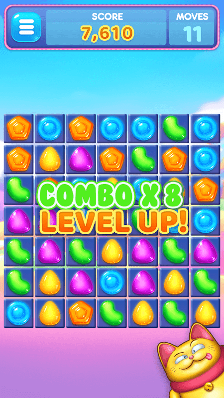 - Toca para combinar 3 caramelos del mismo color para reventarlos