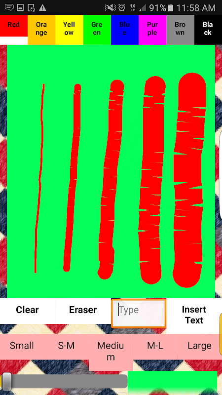 This app provides the user with customization tools such as an RGB scale to customize the color of the canvas. There are also five different pen sizes to choose from to mix up the style of how you draw. There are eight different color options for your pen as well as an eraser which is programmed to match the color of the background. You can either slide the pen to create a line or tap the canvas to create a circle which matches the size of your pen. You can also type what you want for captions that will appear on the screen. Don't worry, if you make a mistake you can always use the eraser or press the clear button to start a new creation. Have fun doodling!