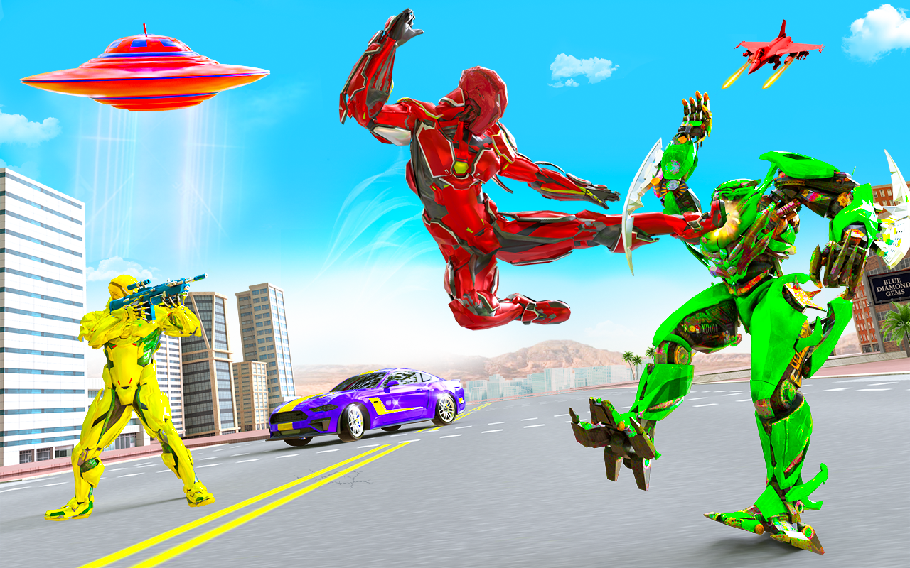 Get into the city battle of new 3d robot games. You will be surprised to play the exclusive variation of transformations with realistic feels. There are multiple modes of this robot game with various options of battle machines to choose from. Get trained to fight the future robot battle on ground and air battle with jet fighters. Don’t miss to avail the real opportunity of playing flying car games in a single small package.