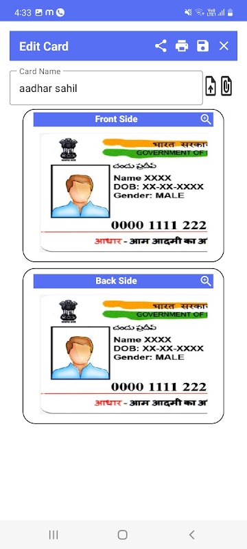 2. User can share, print the card's. App provides with predefined cards, user can add/delete/update as per user's requirements.
