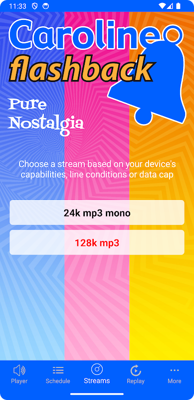 Mucha gente, de cierta edad, todavía asocia Radio Caroline con la música pop de los años 60 y 70. Caroline Flashback ofrece un servicio alternativo para oyentes nuevos y leales que desean escuchar canciones de esta era apasionante.