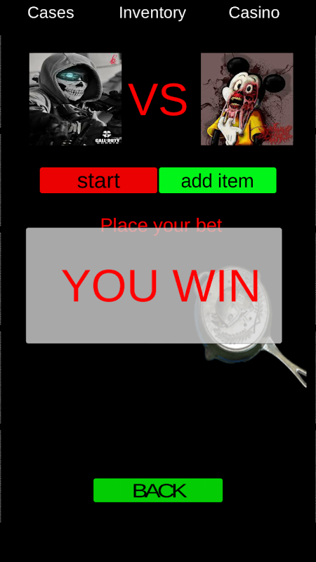 Coinflip-play 50/50 in a duel with your skins! In order to start, go to the casino tab, select the enemy and win!
