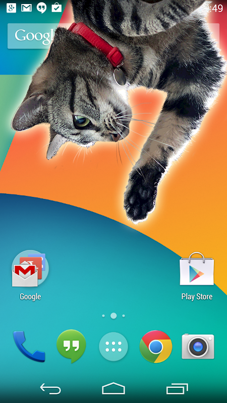 ¿Amas a los gatos? ¡Ahora puedes tener tu propio gato dentro de un teléfono móvil! Esta es una animación de un lindo gato sentado y lamiendo al peludo. Puedes hacerle una dulce broma a una novia. Elija el momento en que aparecerá el gato y elija la configuración favorita. Después del tiempo seleccionado, se mostrará una animación de un gato encima de otras aplicaciones. ¡Parece muy realista para que puedas decirles a tus amigos que tienes un depredador real!