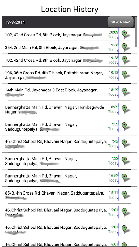 - Haga clic en los botones “Ver” en la aplicación y verá las pistas de la célula (lugares visitados) en vista de mapa de Google y ver la lista.
