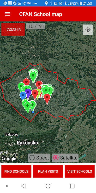 Esta aplicación CfaN es solo para uso interno. Dentro de esta aplicación, los evangelistas pueden descubrir nuevas escuelas dentro de regiones previamente vírgenes, marcar estos lugares y planificar visitas para llegar a ellos con el Evangelio de Jesucristo.