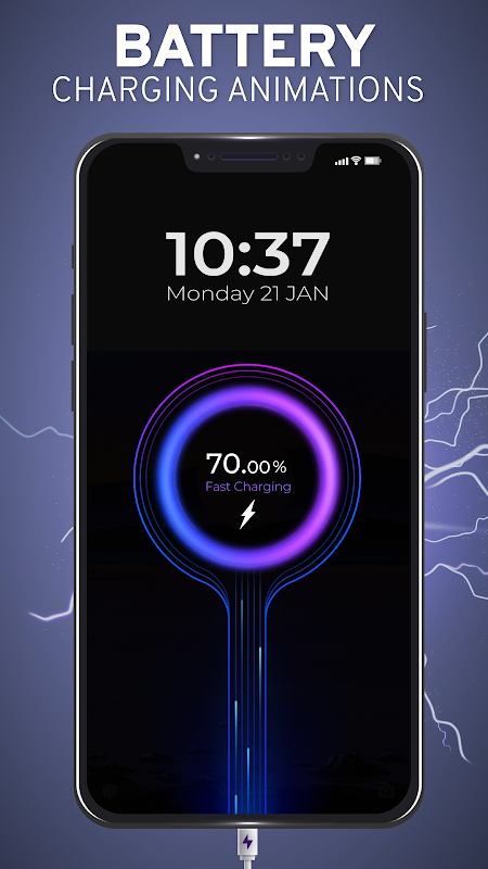 Para competir con la supremacía de la aplicación de animación de batería, se exhibe una animación de carga de pantalla de bloqueo masiva en el programa Mastery of Animation. Con nuestras animaciones de reproducción de carga automatizada, puede cargar su dispositivo de manera cómoda y sin problemas en unos minutos sin tener que preocuparse por nada.